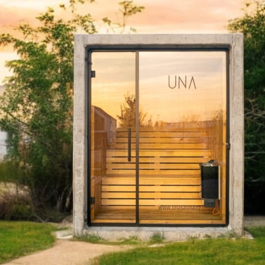 UNA sauna je venkovní finská sauna pro 2-5 osob, vhodná nejen na domácí saunování. Vyniká svou železobetonovou konstrukcí, která jí zajišťuje jak unikátní vzhled, tak i vlastnosti.